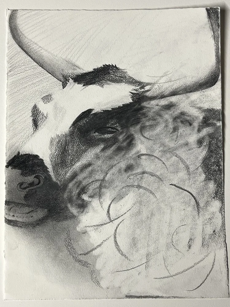 "Taurus" 2024, paint, graphite, watercolor paper, 15 x 11 in ( 38 x 28 cm)