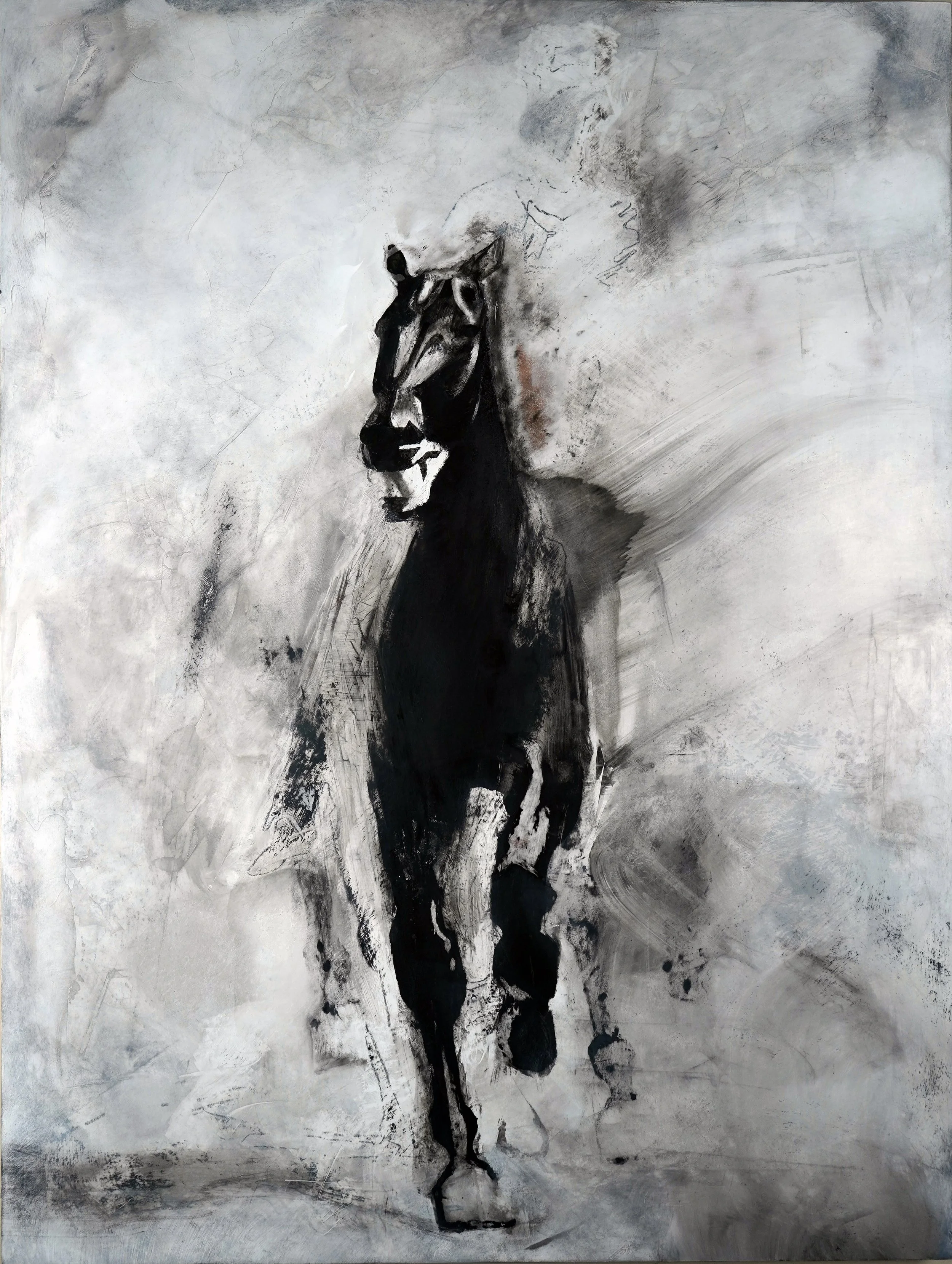 “Spirit Horse” 2022, Sumi ink, watercolor paper, 15 x 11 in (38 x 28 cm)