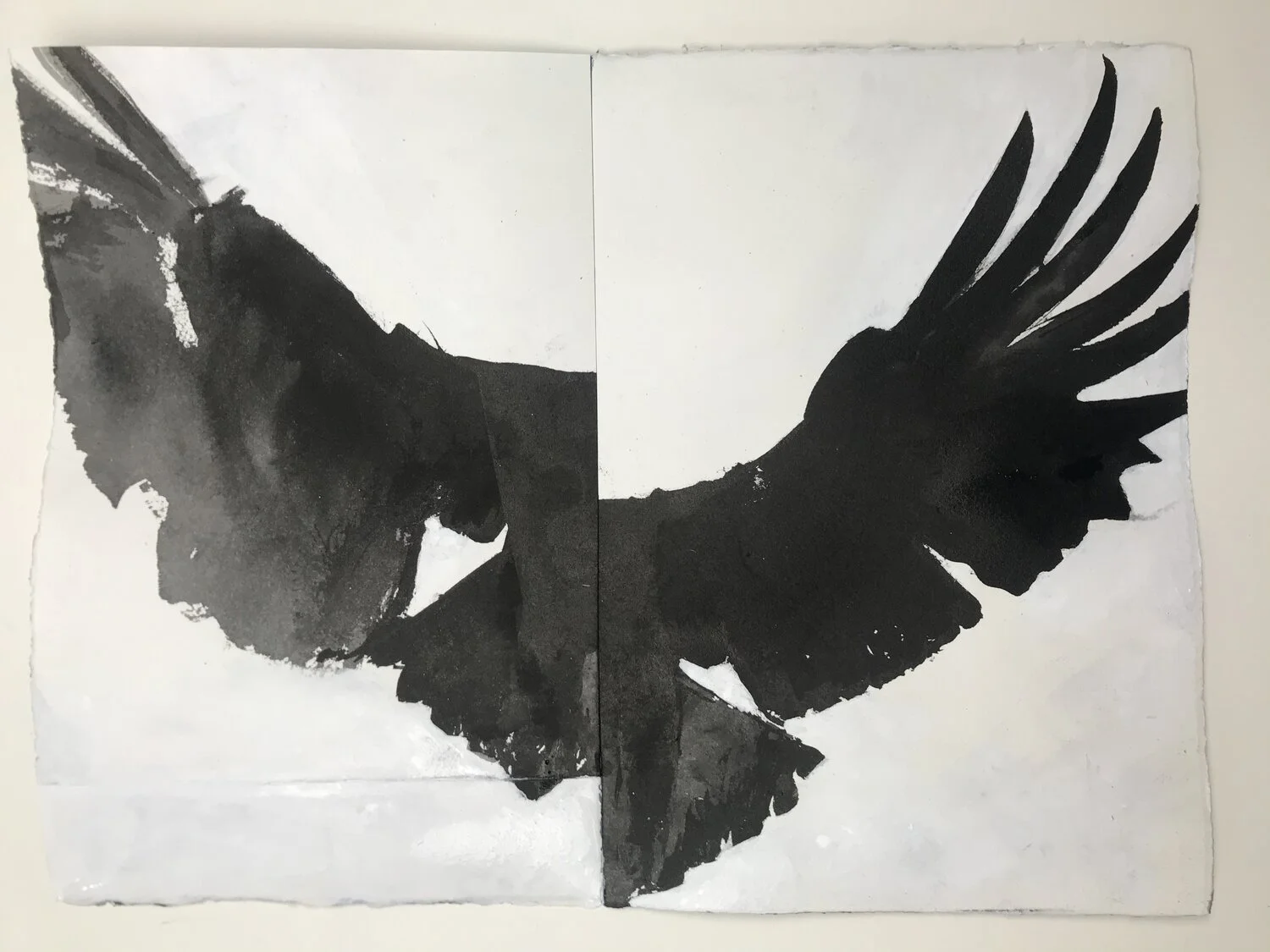 “Spirit Crane” 2022, Sumi ink, watercolor paper 11 x 15 in (28 x 38 cm)