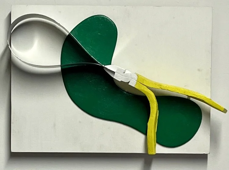 "Loop" 2024, wood, paint, metal, 12 x 16 x 3 in (31 x 40 x 8 cm)
