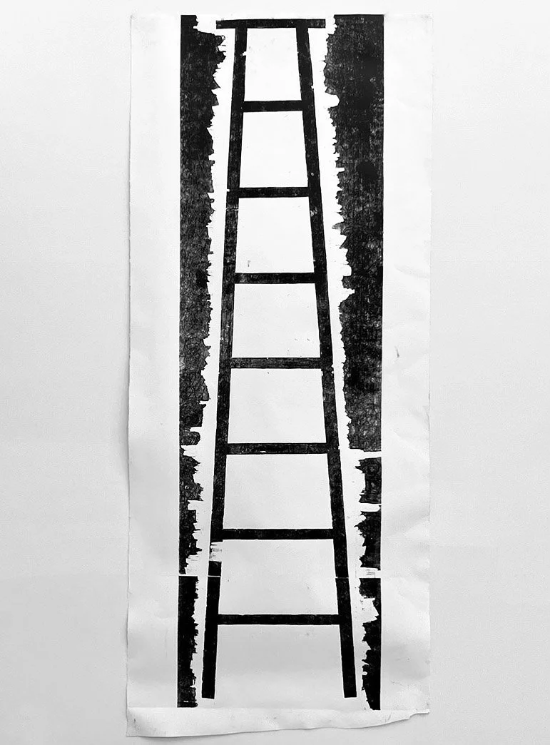 “Structure 1” 2025, Woodblock print (1 of 3), ink, Oil paper, 120 x 51 in (304 x 130 cm)