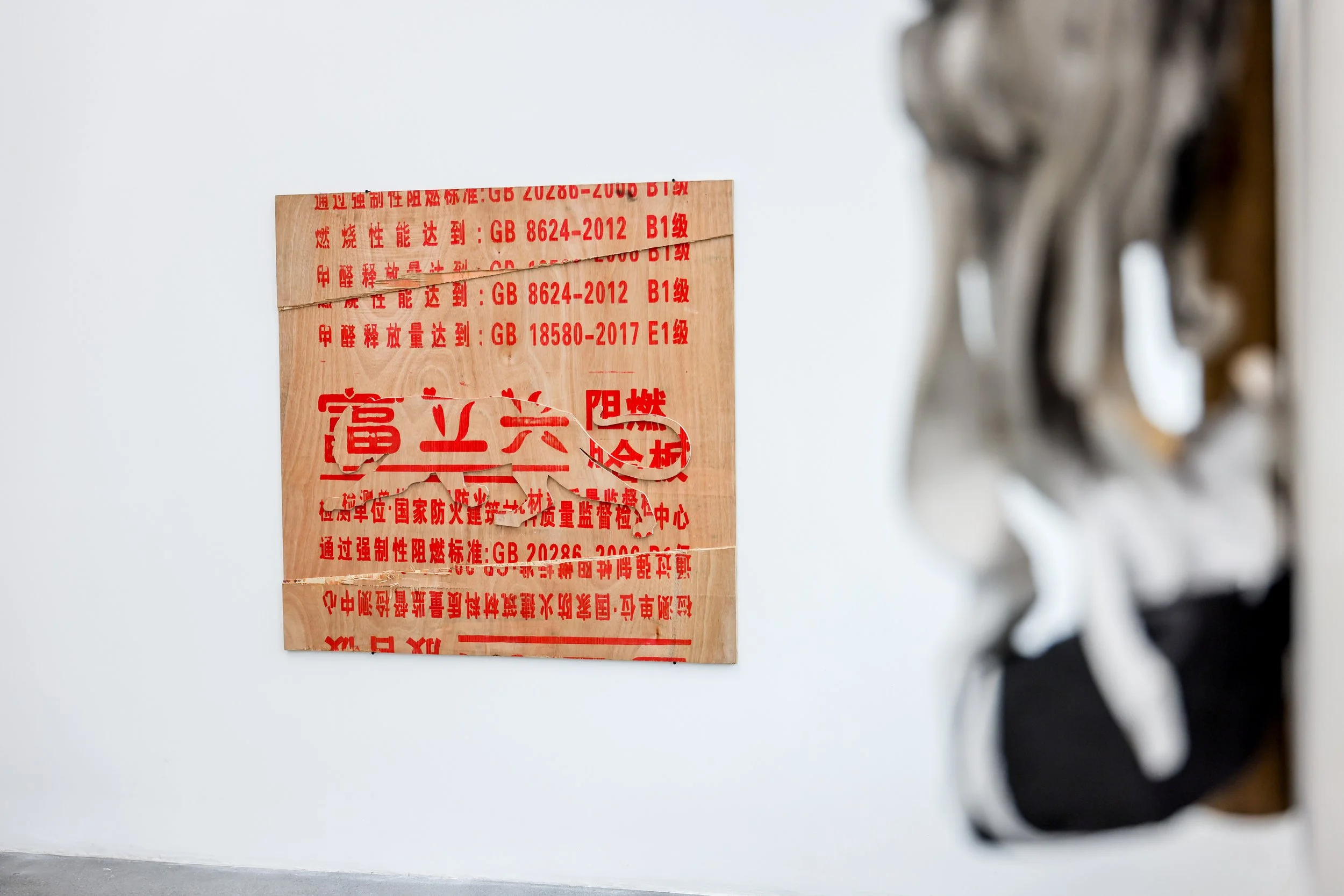 “Coal on Fire” 2025, wood, paint, metal posts, 27 × 16.7 in (69 × 42.5 cm), collection Boxes Art Museum, China