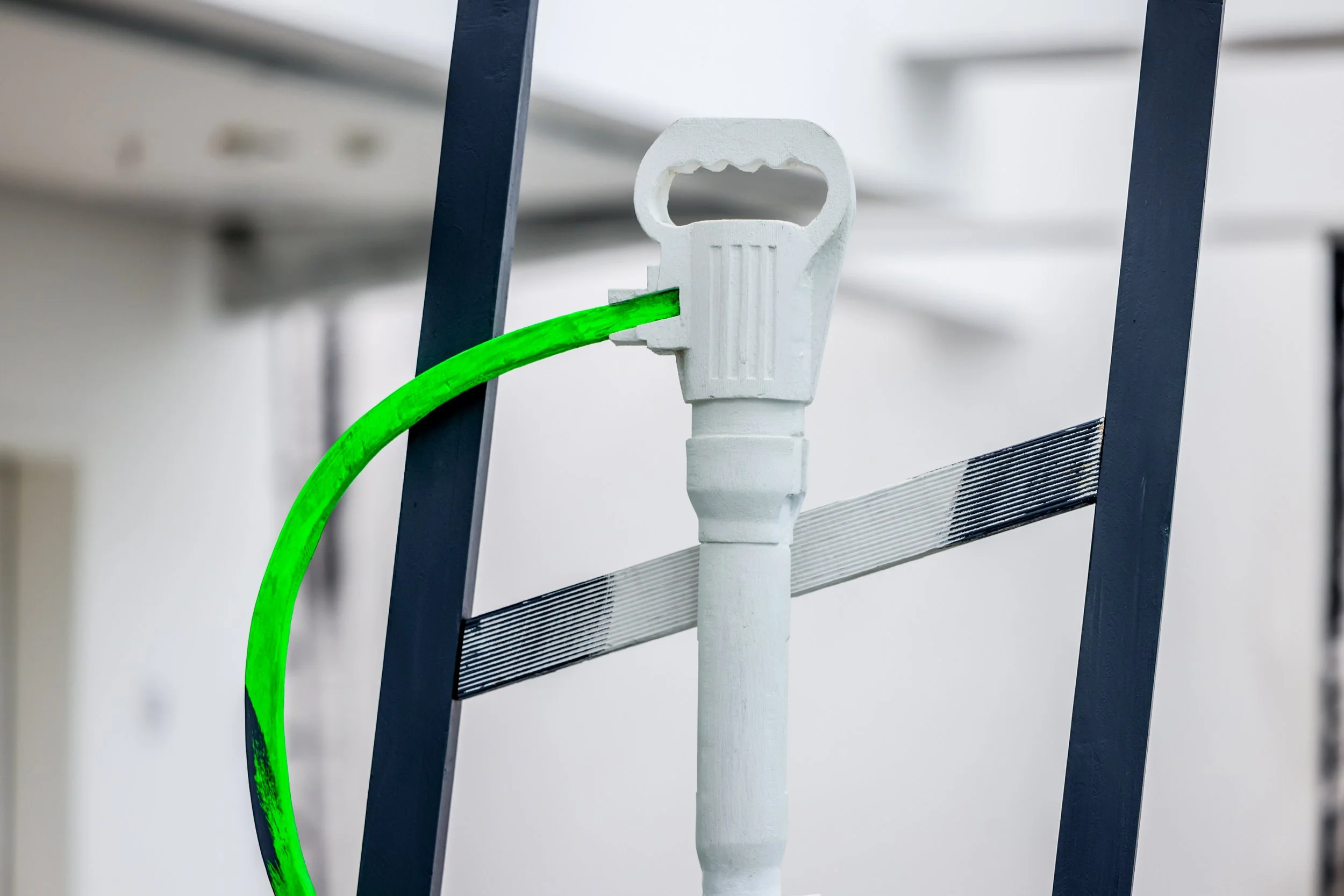 “Pneumatic” 2025, wood, paint, ceramic tile 96 x 30 x 30 in (243 x 76 x 76 cm)