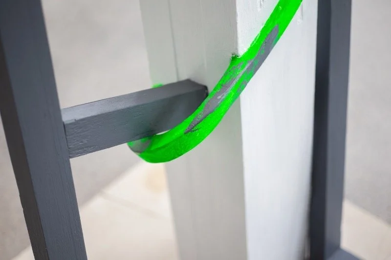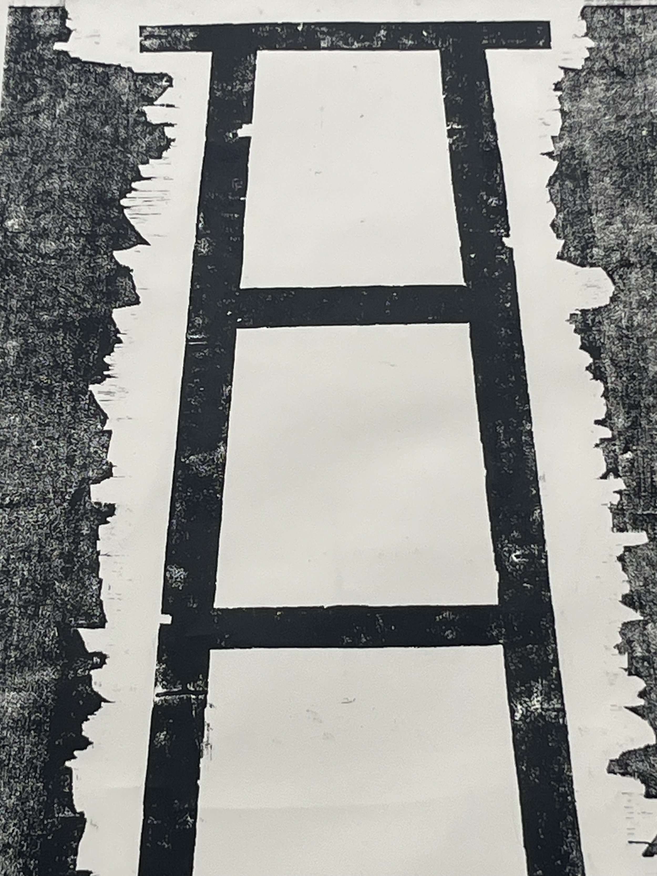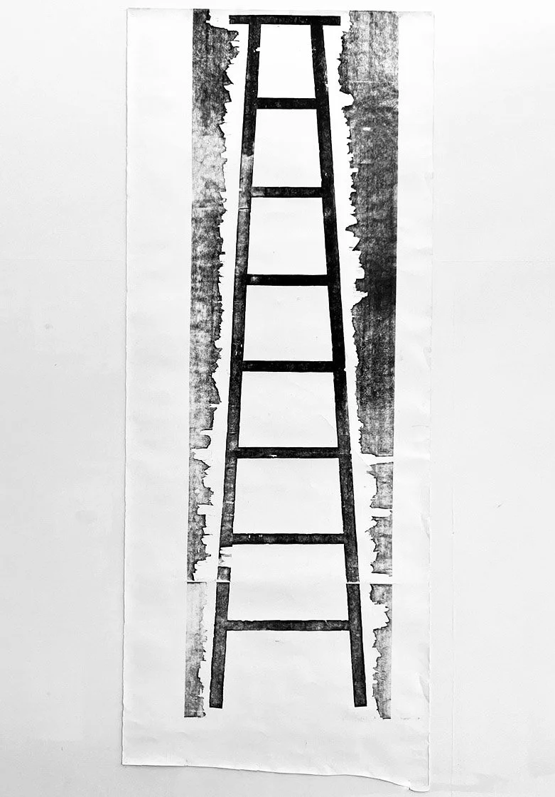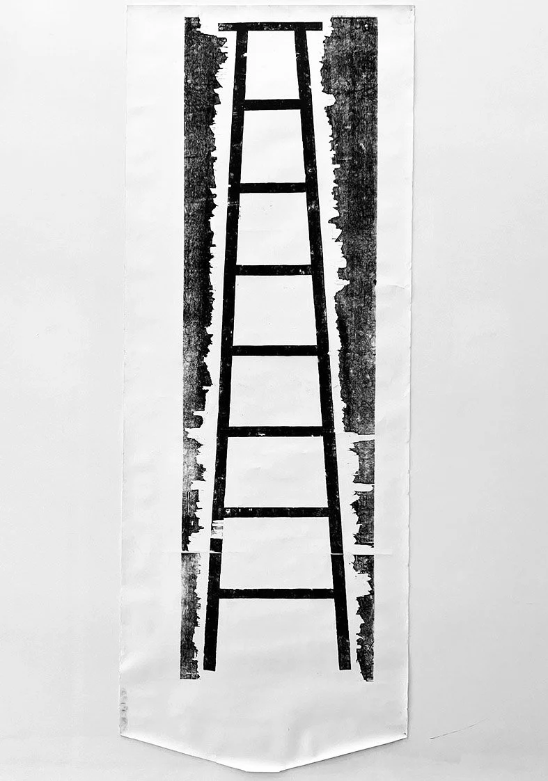 “Coal on Fire” view 1, 2025, wood, paint, metal posts, 27 × 16.7 in (69 × 42.5 cm) collection of museum
