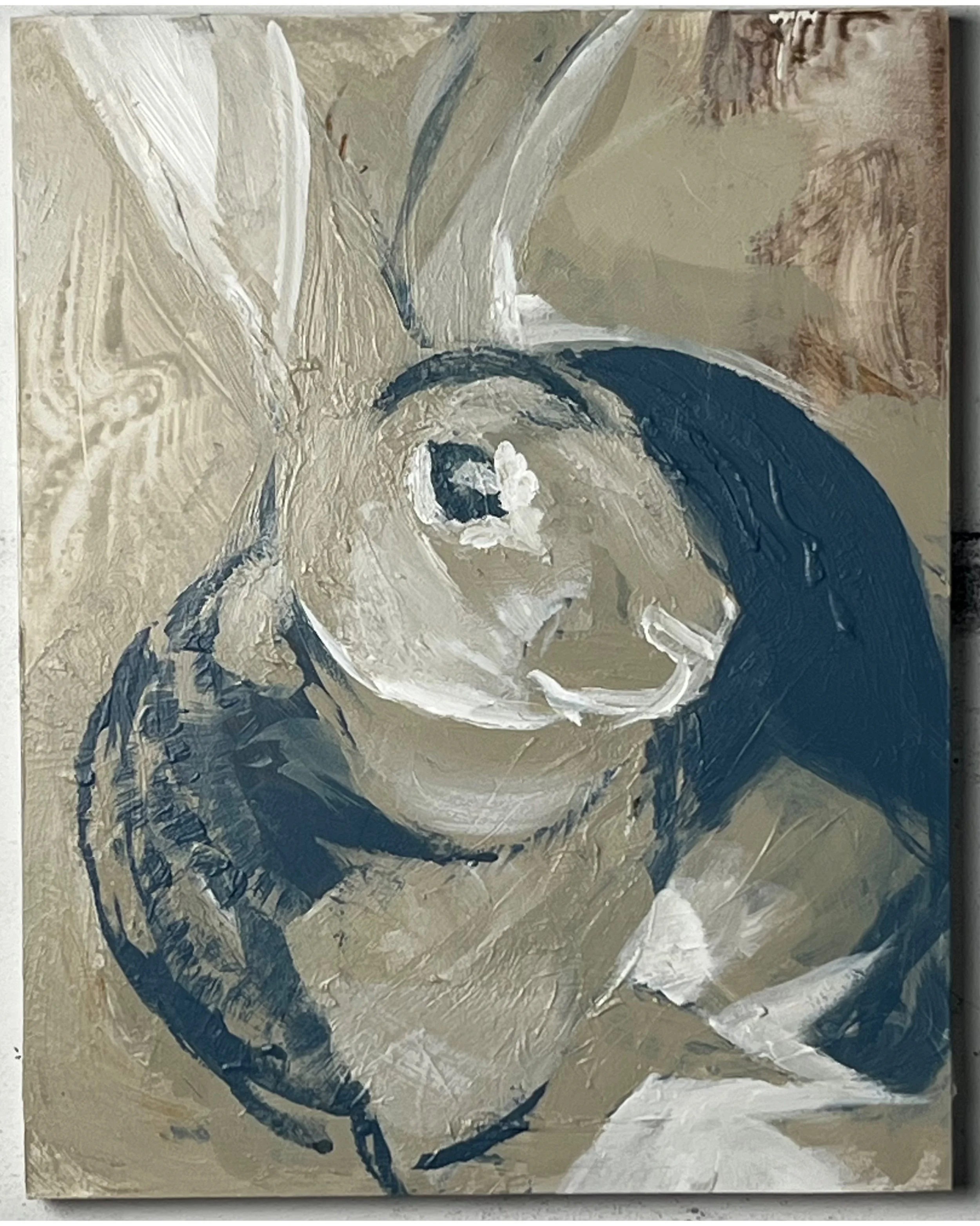 Blue profile, 2025, acrylic paint, wood panel, 14 × 11 in (35 × 28 cm)