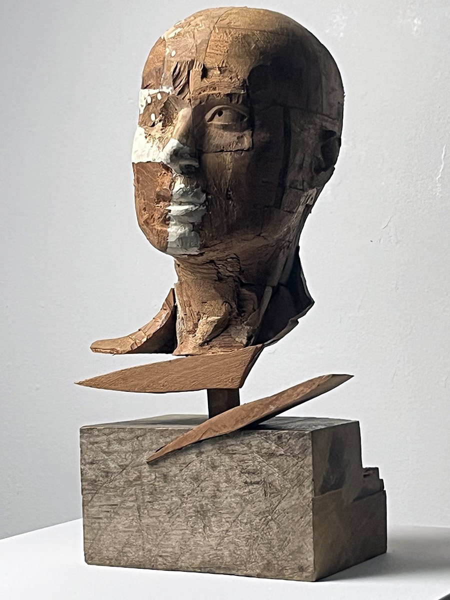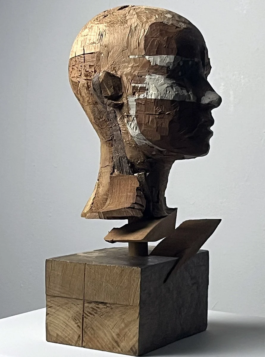 Portrait- wood, 2025, wood, epoxy resin, 16 x 7 x 8 in. (41 x 18 x 21 cm)