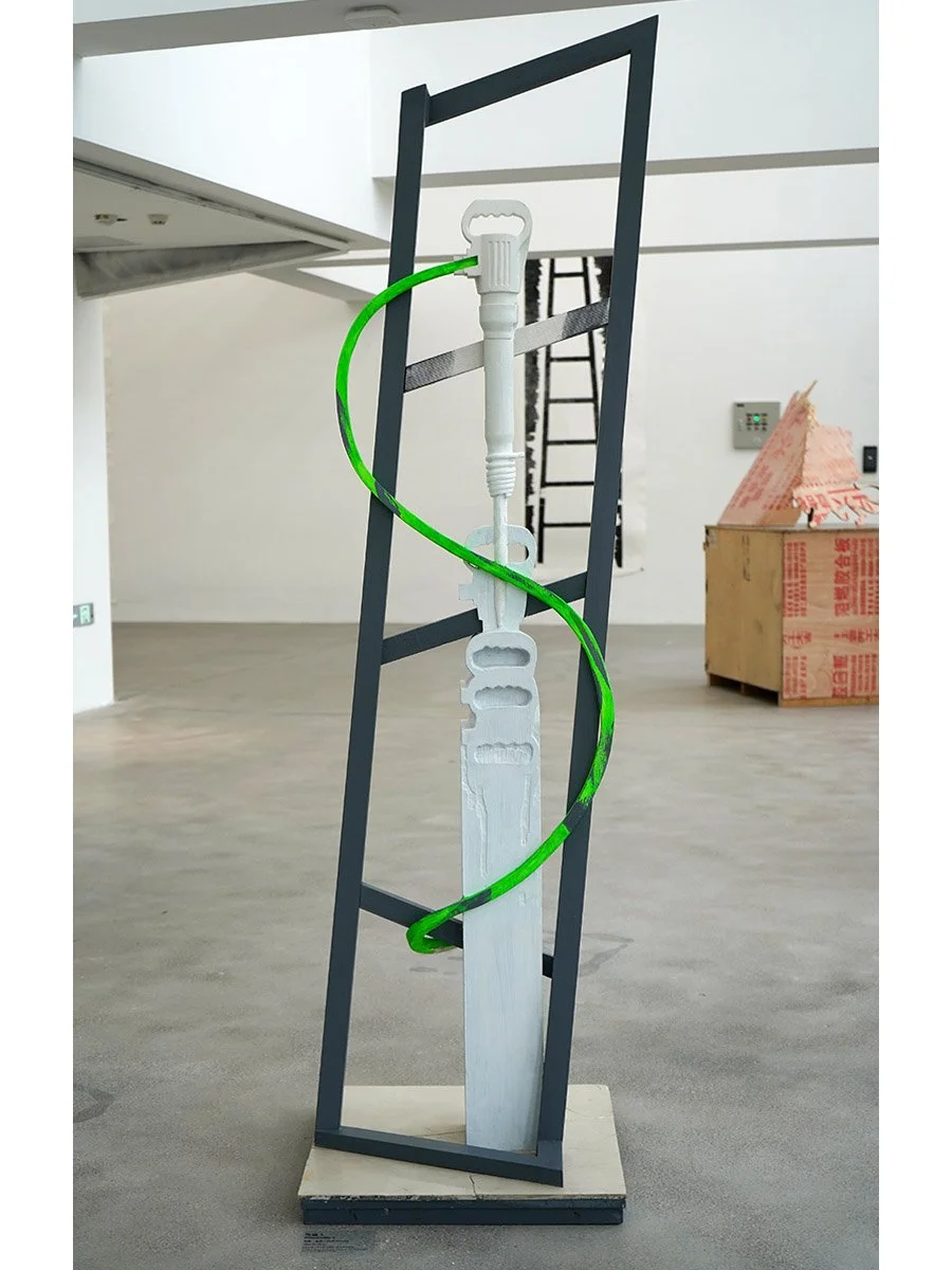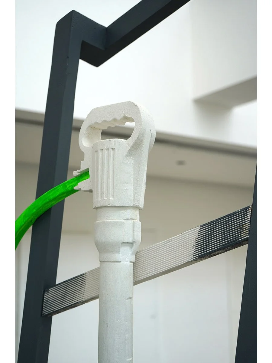 Pneumatic, 2025, wood, paint, ceramic tile, 96 x 30 x 30 in (243 x 76 x 76 cm)