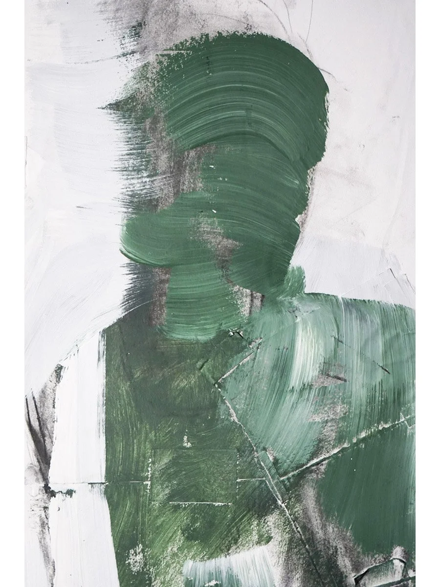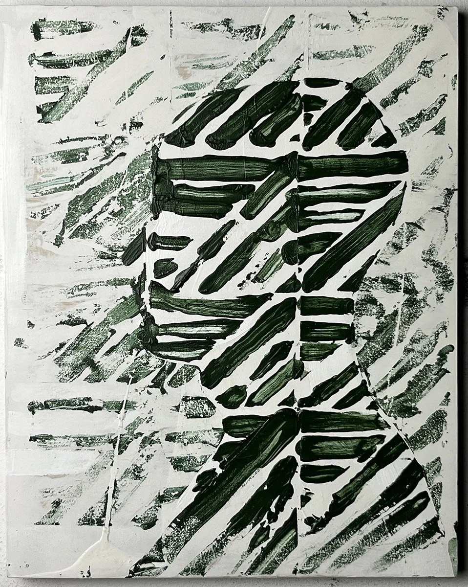 Green profile, 2025, acrylic paint, wood panel, 14 × 11 in (35 × 28 cm)
